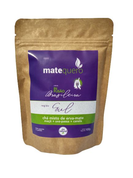 Região Sul: Erva-mate (Ilex paraguariensis), maçã desidratada, uva passa desidratada e canela moída (Cinnamomun verum).